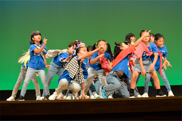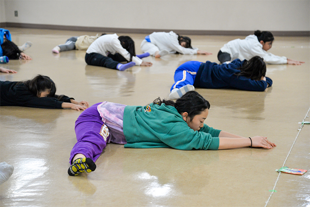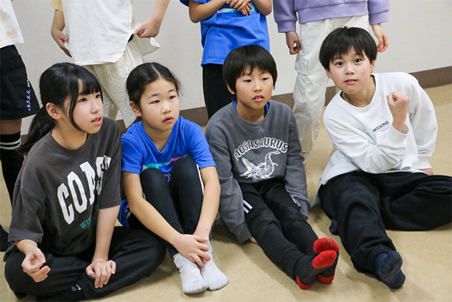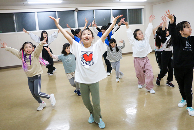 4歳から小学6年生までが通うリズムダンスの教室は、いつも和やかな雰囲気。子供たちは、学年や学校を越えてたくさんの友だちと触れ合い、成長していきます。これは、学校教育では味わえない貴重な体験。発表会前になると、レッスンはちょっと厳しくなることもありますが、それでも皆と力を合わせる喜びで元気いっぱいです! |